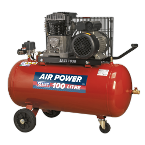 Air Compressor 100L Belt Drive 3hp with Cast Cylinders & Wheels